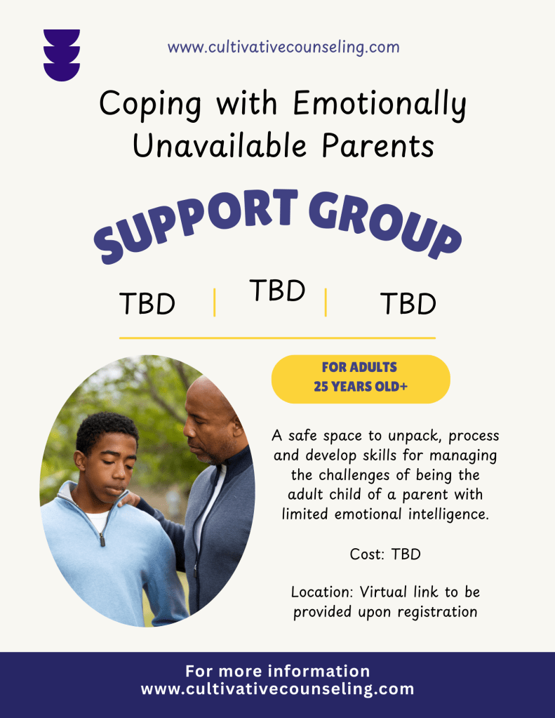 A safe space to unpack, process and develop skills for effectively managing the challenges of being the adult child of a parent who lacks emotional intelligence.